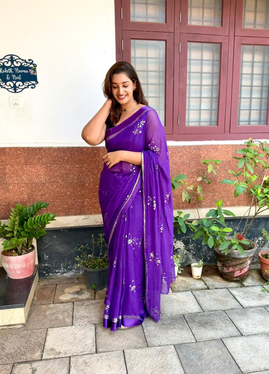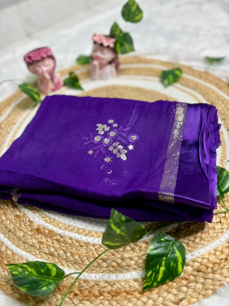 Viscose Georgette Saree With Emroidery Work